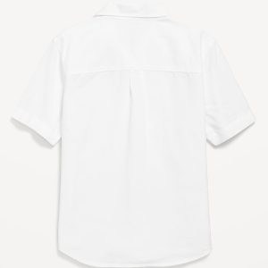 Short-Sleeve Oxford Shirt for Boys: spread collar, short sleeves, patch pocket at chest, full-length buttoned placket, all-over print, #865930
