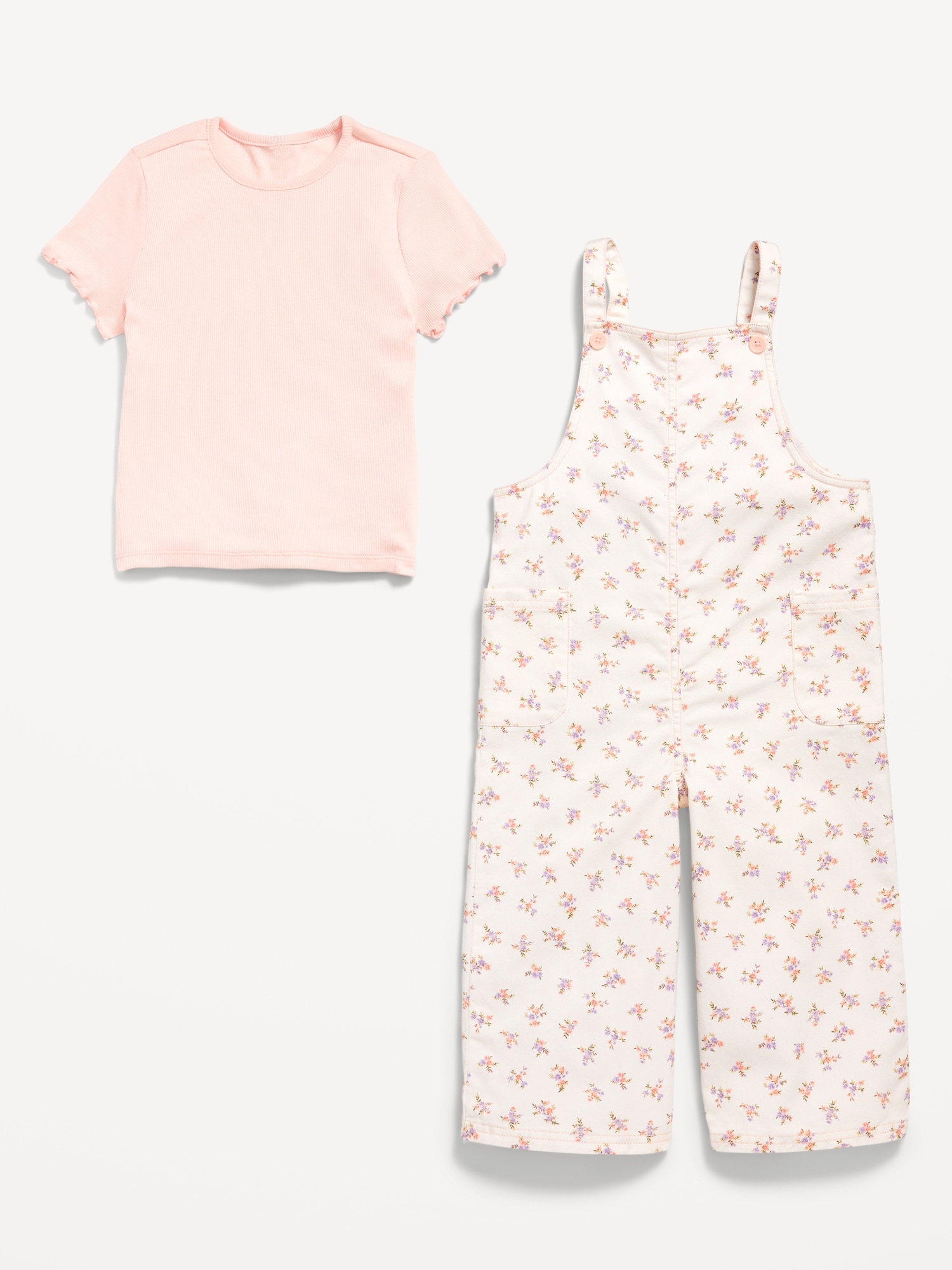 Short-Sleeve T-Shirt and Jumpsuit Set for Toddler Girls