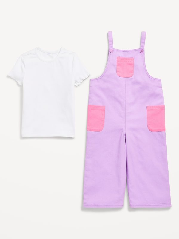Short-Sleeve T-Shirt and Pocket Jumpsuit Set for Toddler Girls