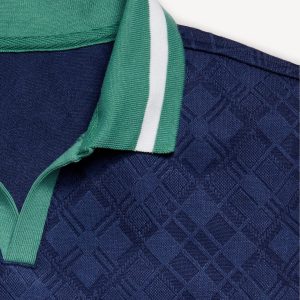 Short-Sleeve Textured-Knit Collared Shirt for Boys: ribbed spread collar, v neck, short sleeves, #750298