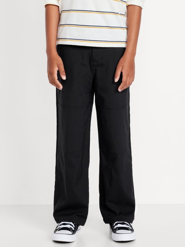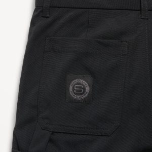ShredTech Baggy Carpenter Pants for Boys: interior adjustable waistband, snap-button closure in sizes 5-8, regular button closure in sizes 10-20, zip fly, diagonal pockets, panel at each leg, utility patch pockets at back, built-in hammer loop at left leg, made to shred — not shred up., #804693