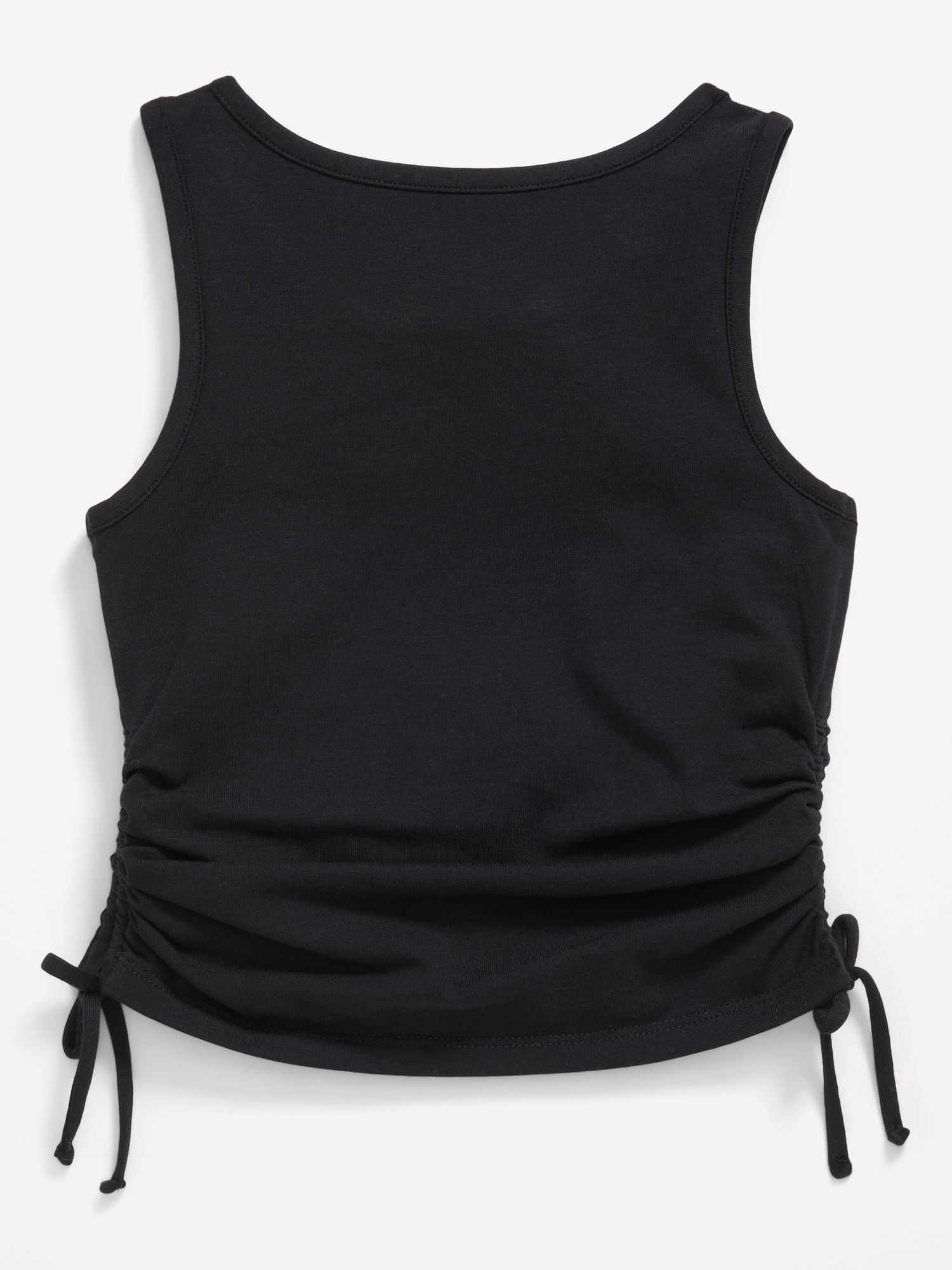 Side-Ruched Tank Top for Girls: scoop neckline, sleeveless, ruching at sides, decorative ties at each side, #766963