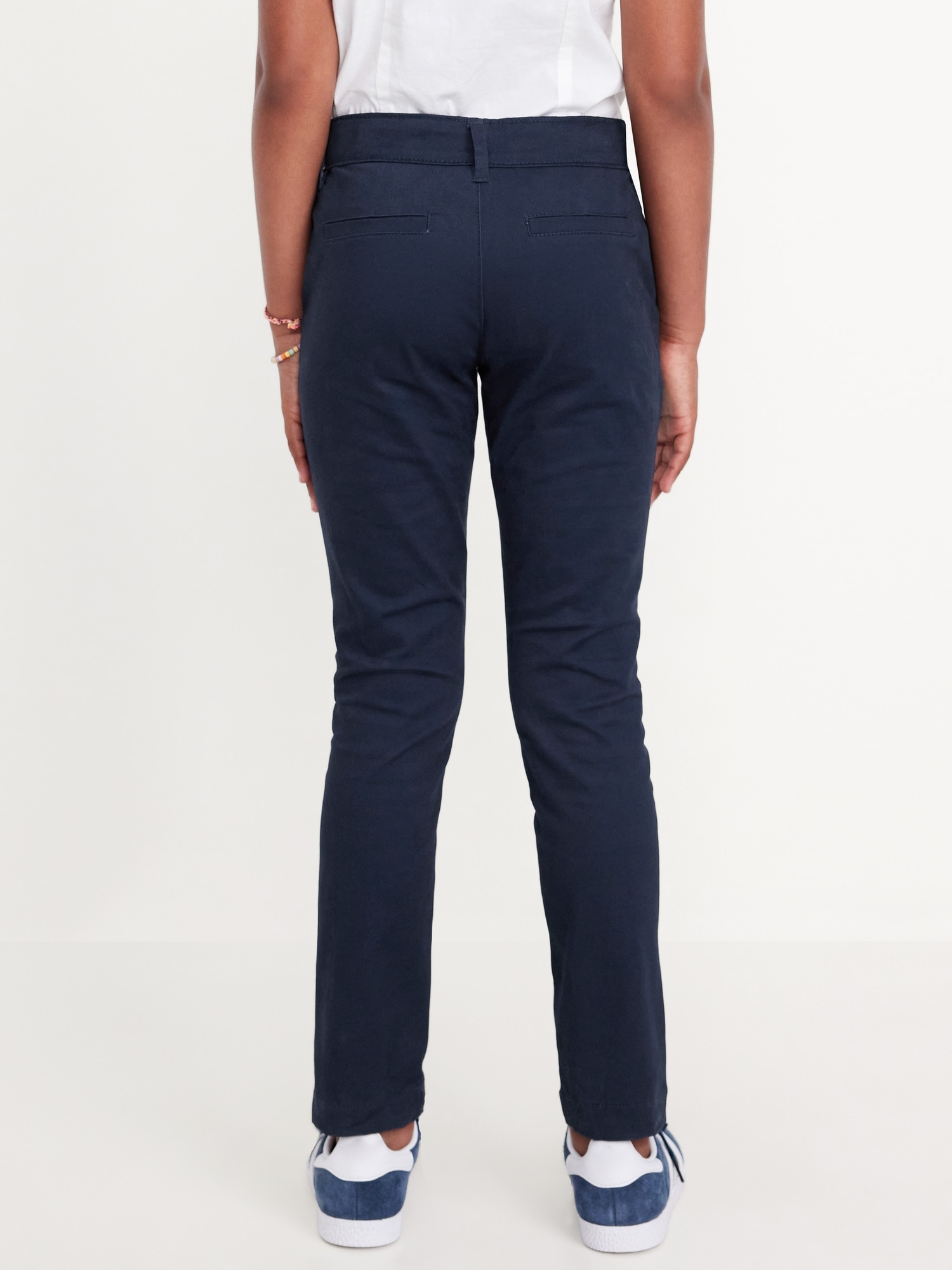 Skinny School Uniform Pants for Girls: Uniform Guarantee: Uniforms may be returned for a full refund with the original receipt for 365 days from the date of purchase.interior adjustable waistband expands, snap-button closure in sizes 5-8, regular button closure in sizes 10-20, zip fly, flat front, diagonal on-seam pockets, decorative welt faux pockets in back, #877990