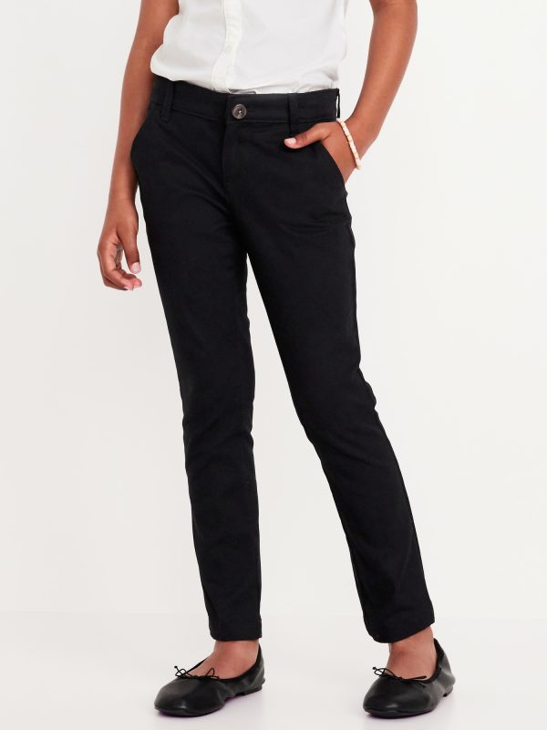 Skinny School Uniform Pants for Girls: Uniform Guarantee: Uniforms may be returned for a full refund with the original receipt for 365 days from the date of purchase.interior adjustable waistband expands, snap-button closure in sizes 5-8, regular button closure in sizes 10-20, zip fly, flat front, diagonal on-seam pockets, decorative welt faux pockets in back, #877990