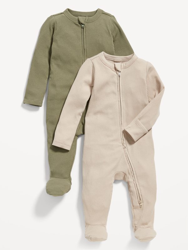 Unisex 2-Way-Zip Sleep & Play Rib-Knit Footed One-Piece for Baby