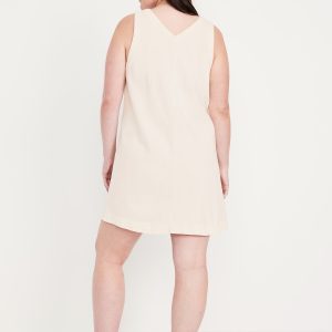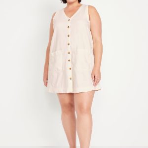Sleeveless Button-Front Mini Dress: v-neck, wide straps, button front, patch pockets, #766910