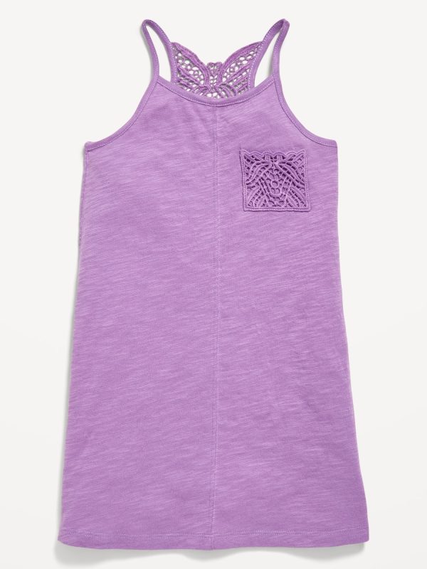 Sleeveless Crochet Racerback Dress for Toddler Girls: rounded neckline, sleeveless, crochet-knit racerback, crochet-knit patch pocket at chest, online exclusive, #766761