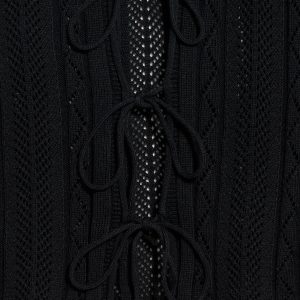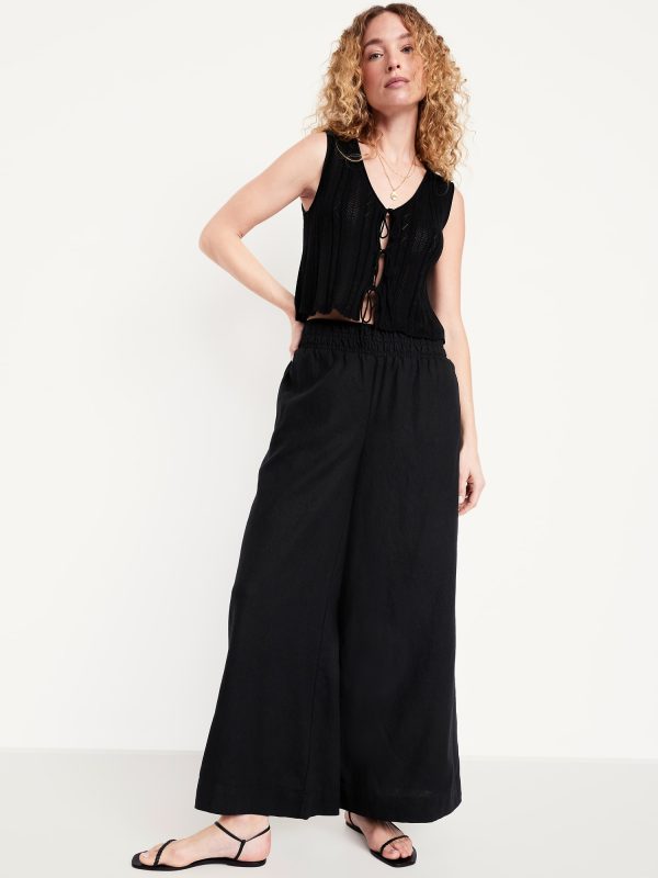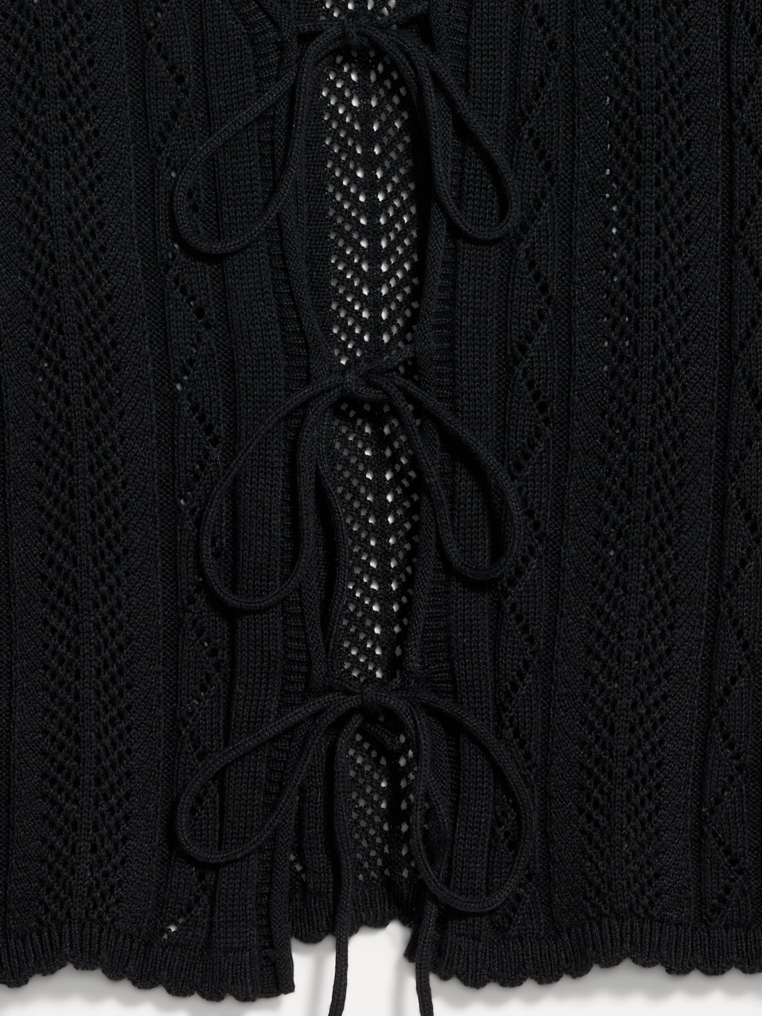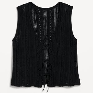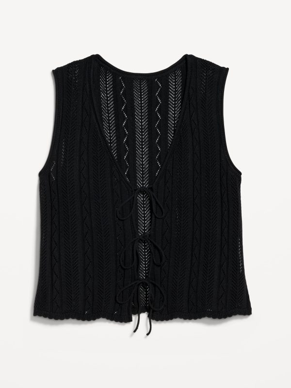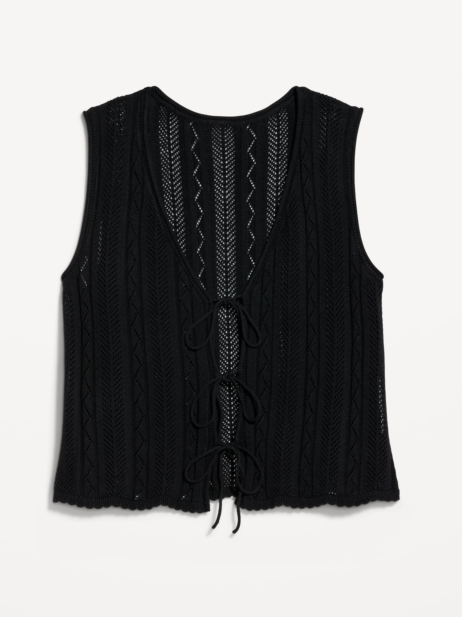 Sleeveless Crochet Tie-Front Top: deep v-neck, wide straps, tie-front detail, #761570