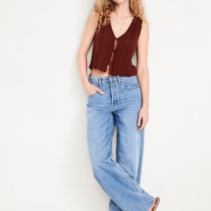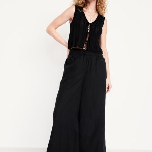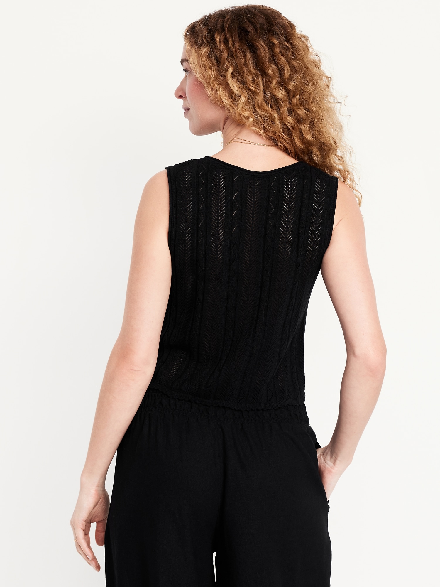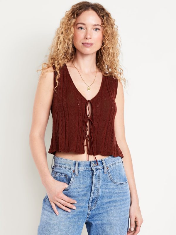 Sleeveless Crochet Tie-Front Top