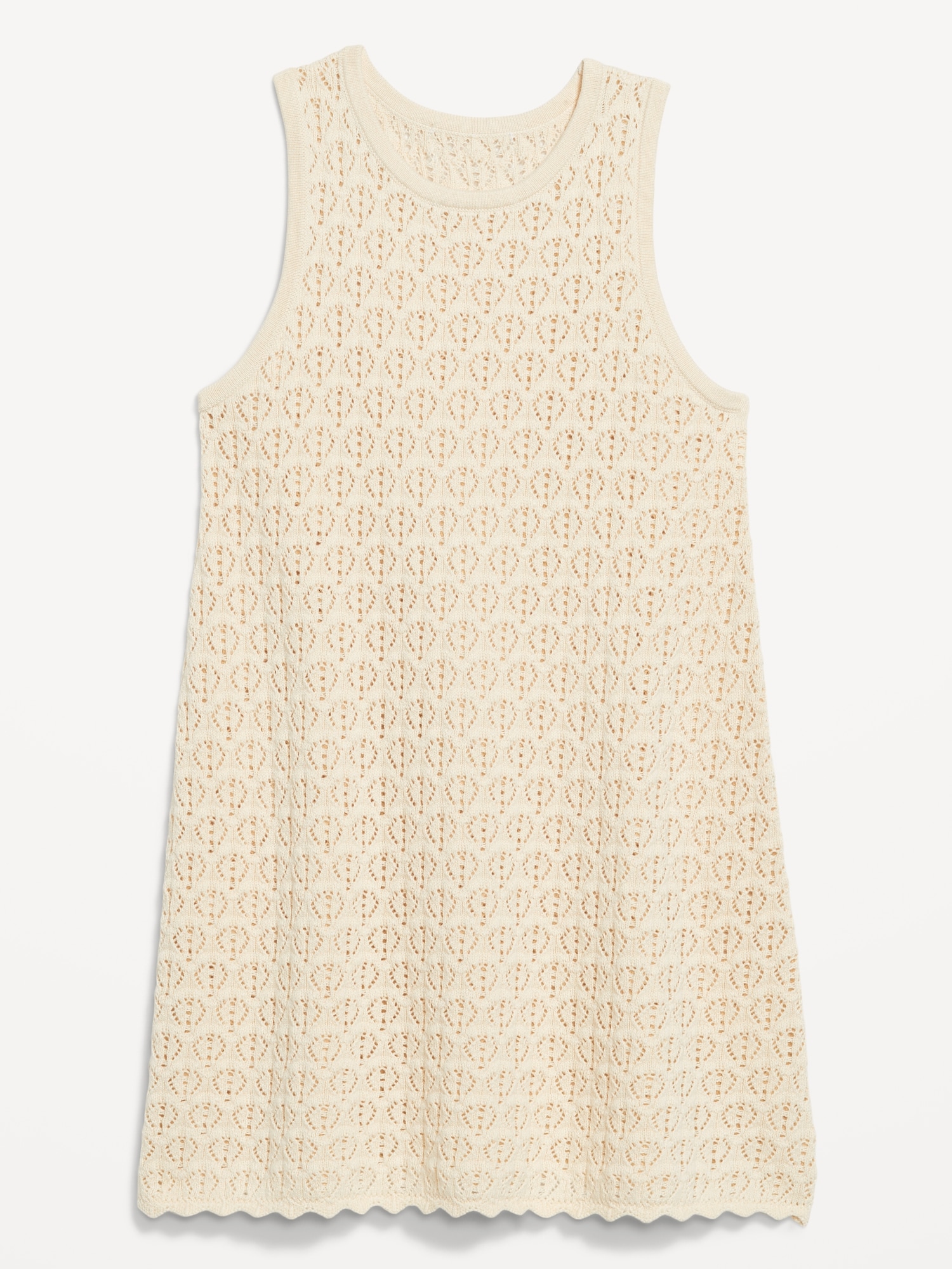 Sleeveless Crochet Tunic Sweater: high neck, scallop hem, pair back to our matching crochet pants, #761504