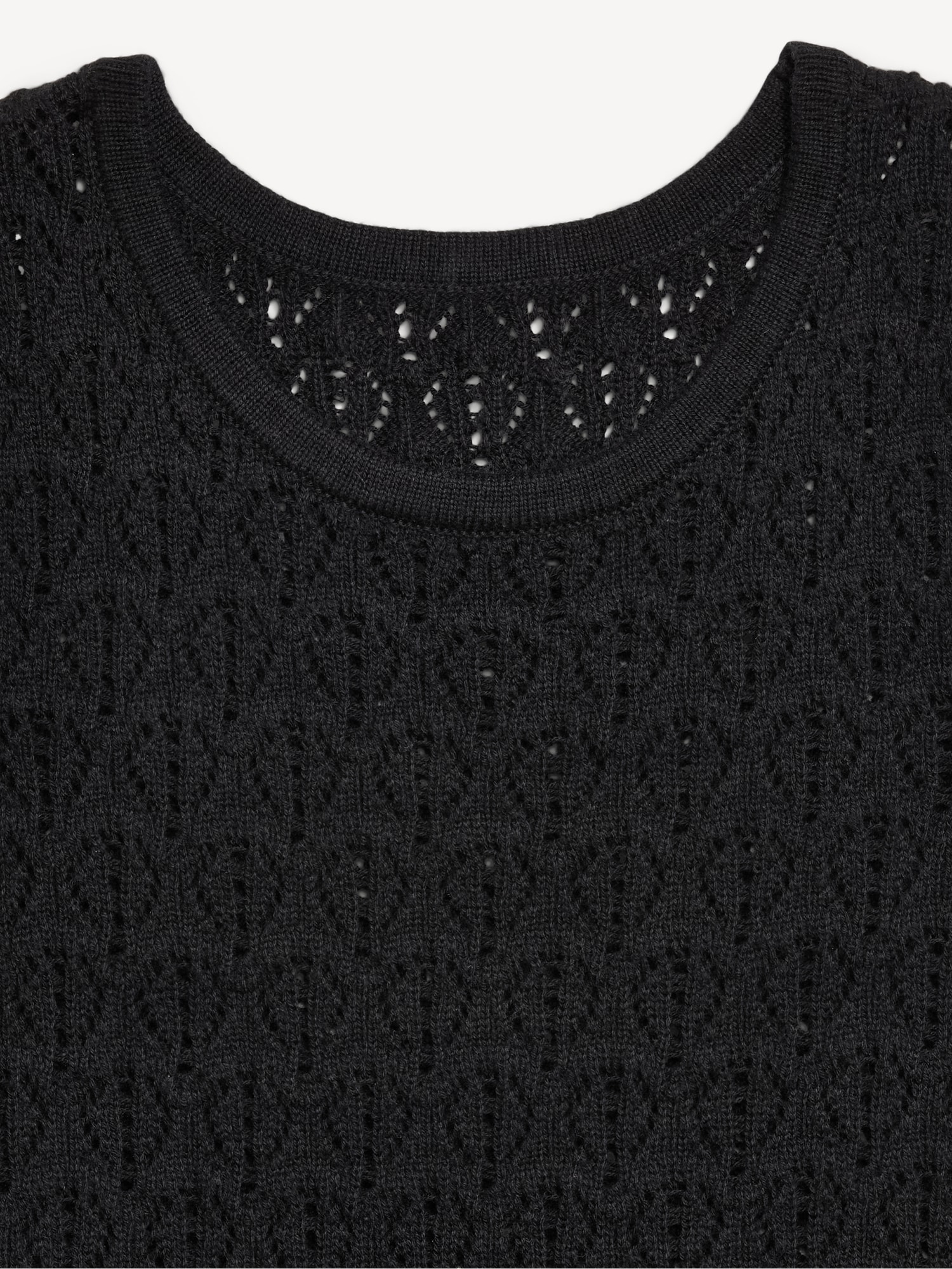 Sleeveless Crochet Tunic Sweater: high neck, scallop hem, pair back to our matching crochet pants, #761504
