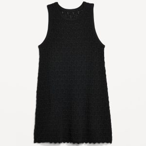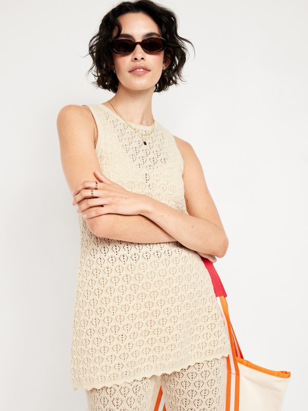 Sleeveless Crochet Tunic Sweater: high neck, scallop hem, pair back to our matching crochet pants, #761504