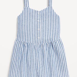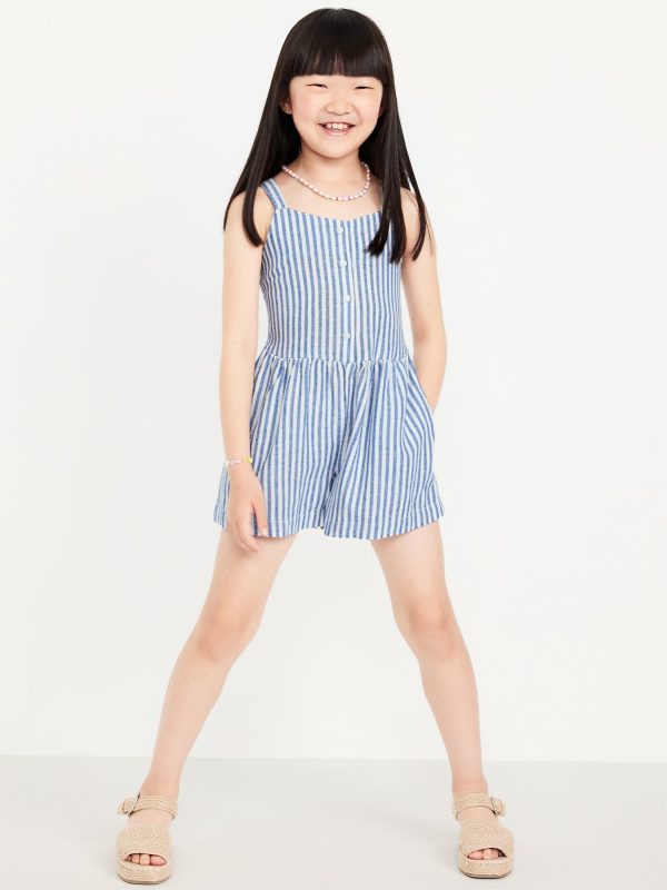 Sleeveless Linen-Blend Button-Front Romper for Girls