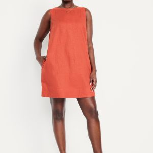 Sleeveless Linen-Blend Mini Shift Dress