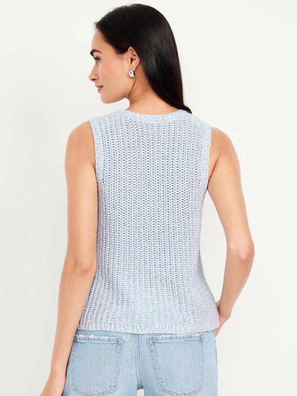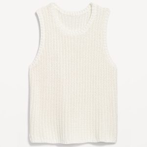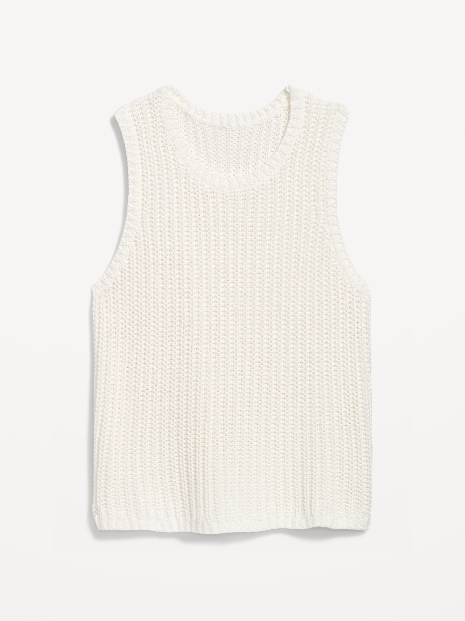 Sleeveless Open-Stitch Sweater: crew neck, sleeveless, pullover style, #664151