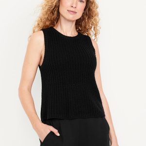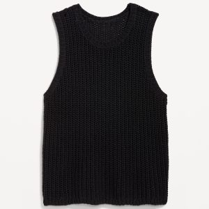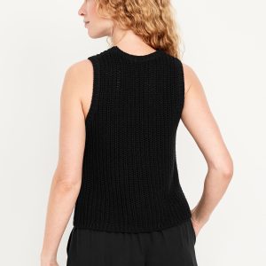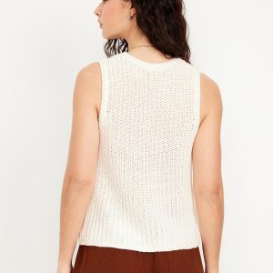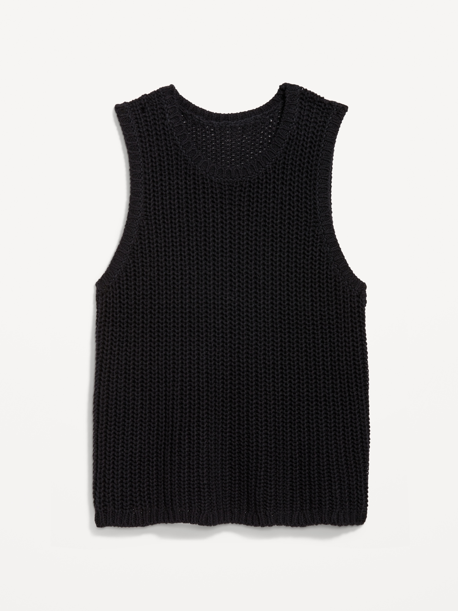 Sleeveless Open-Stitch Sweater: crew neck, sleeveless, pullover style, #664151