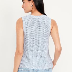 Sleeveless Open-Stitch Sweater: crew neck, sleeveless, pullover style, #664151