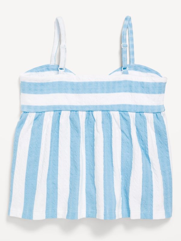Sleeveless Pucker Tank Top for Girls: adjustable straps, knotted-bow accent at front, peplum hem, #766952