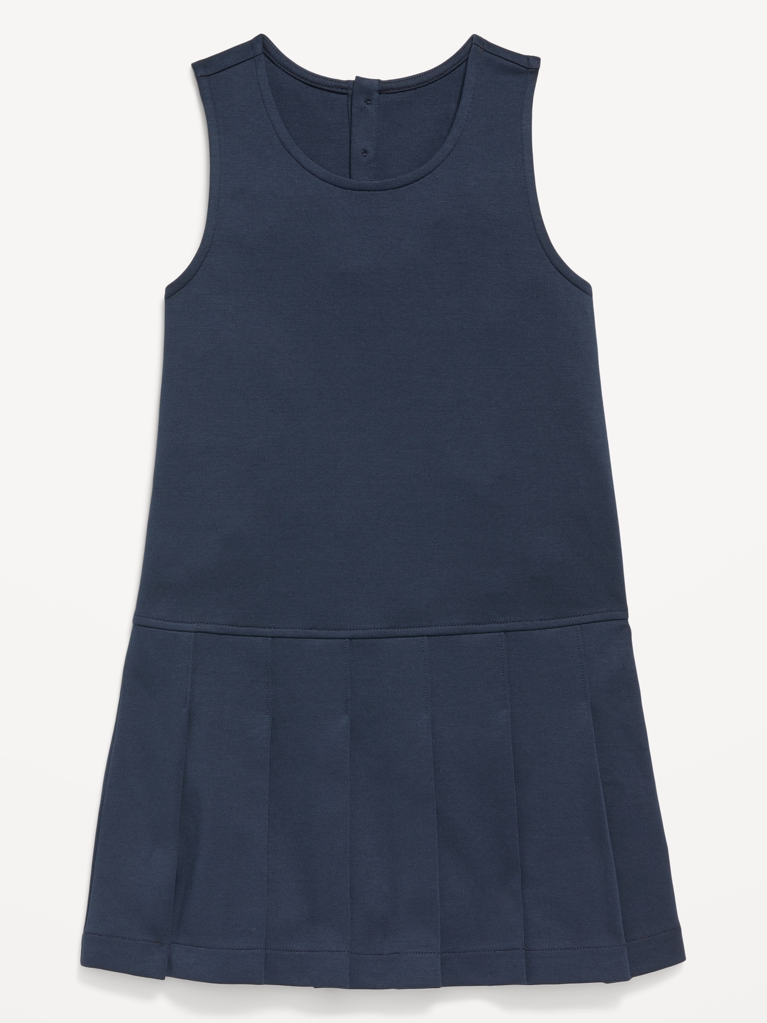 Sleeveless School Uniform Ponte-Knit Dress for Girls: rounded neckline, sleeveless, two-button placket at nape, drop waist, pleated skirt, #766631