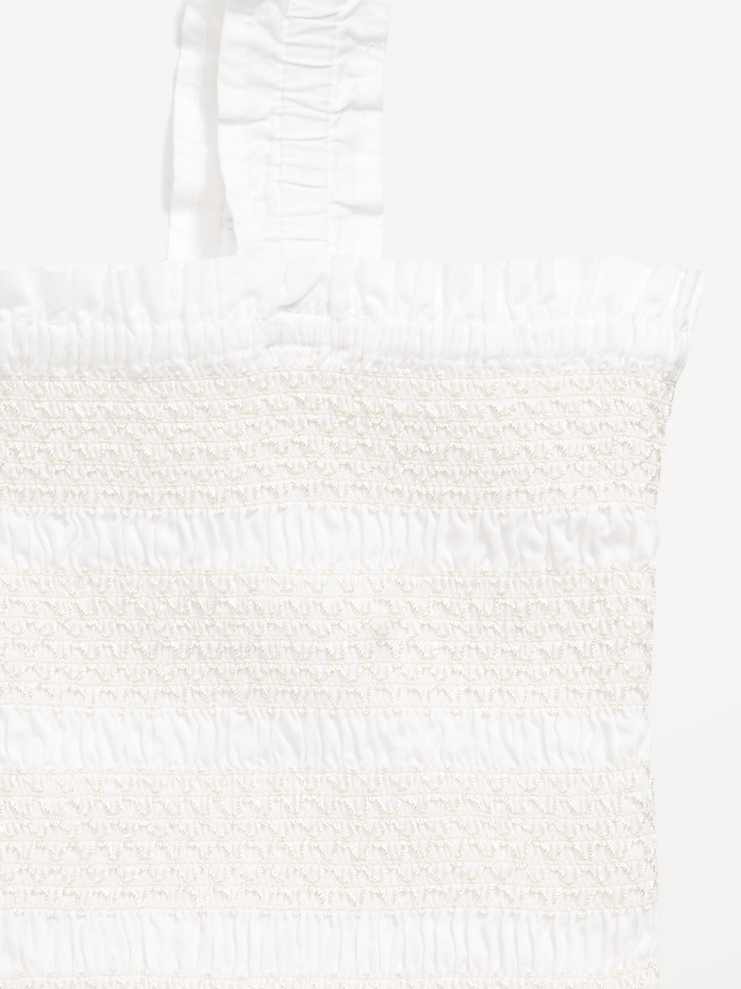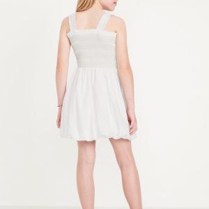 Sleeveless Smocked Bubble Dress for Girls: square neckline, wide shoulder straps, smocked bodice, full bubble skirt, #766652