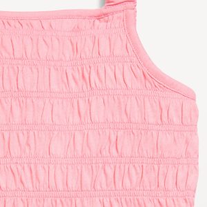Sleeveless Smocked Romper for Girls: square neckline, wide shoulder straps, smocked bodice, on-seam side pockets, all-over print, #766671