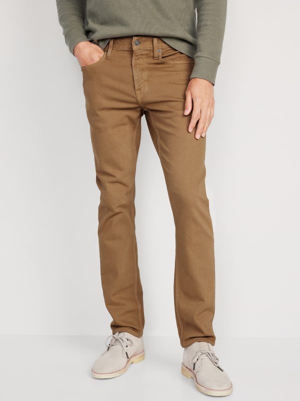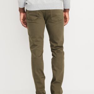 Slim Built-In Flex Five-Pocket Pants: Slim through the hip and thigh, in a soft-washed fabric with a hint of stretch.button front, zip fly, front scoop pockets and coin pocket, back patch pockets, #848863