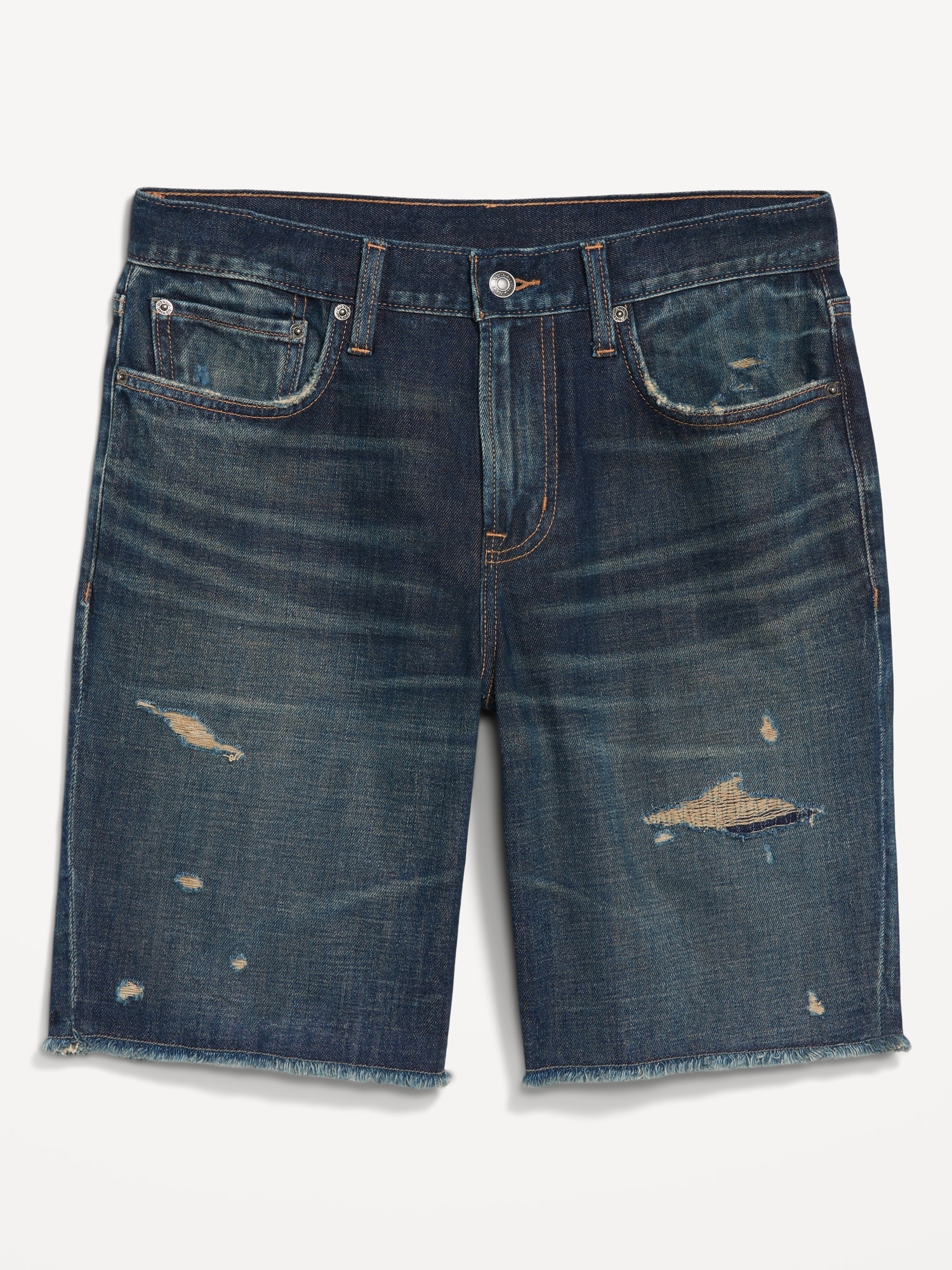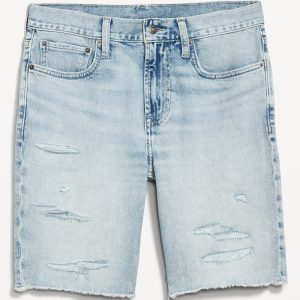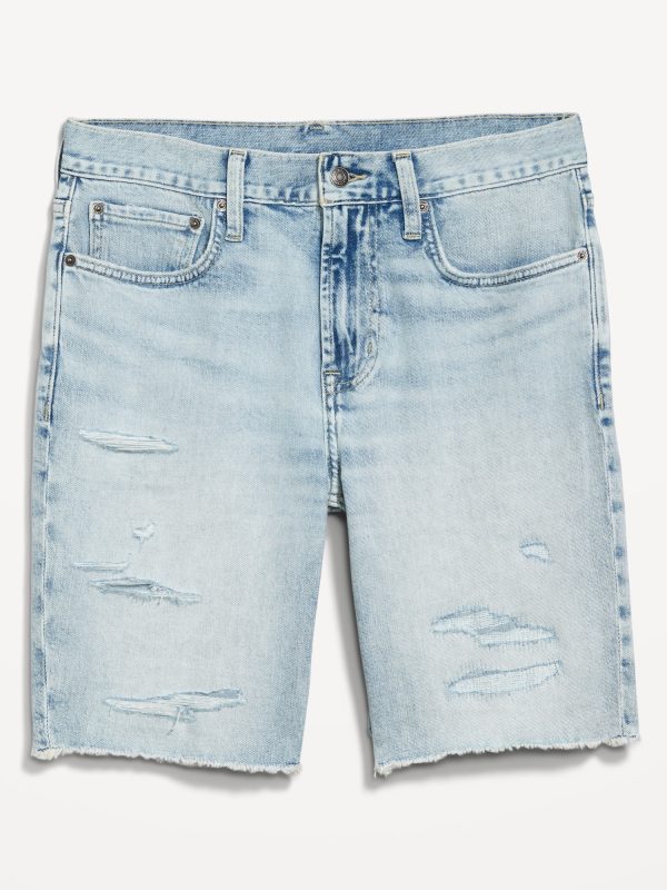 Slim Built-In Flex Jean Raw-Edge Shorts — 9.5-inch inseam