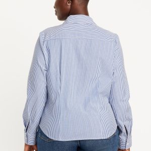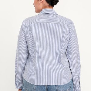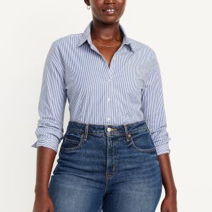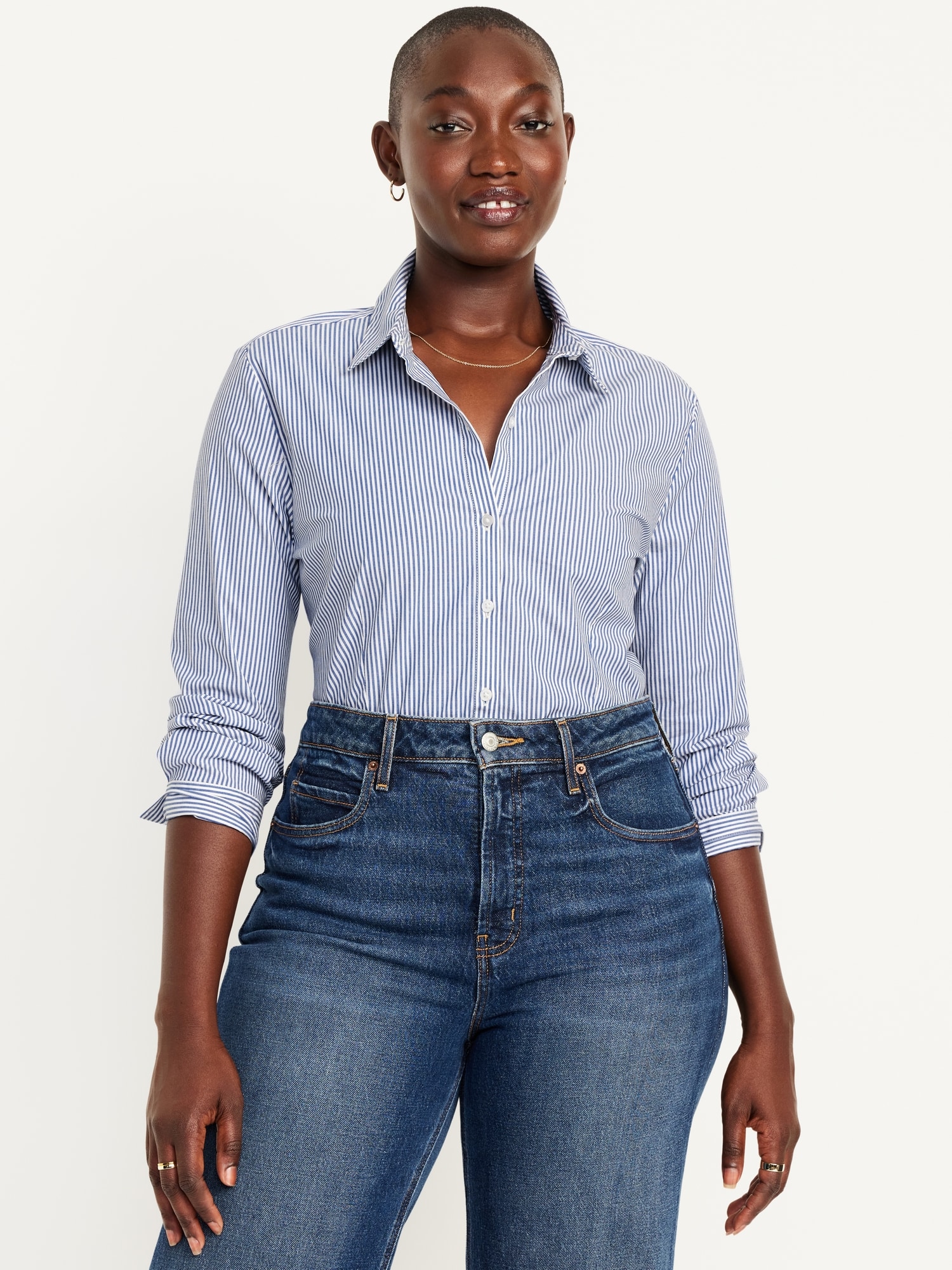 Slim Button-Down Shirt: spread collar, long sleeves, buttoned cuffs, button front, striped print, curved hem, #545902