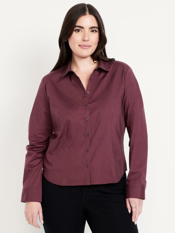 Slim Button-Down Shirt: spread collar, long sleeves, buttoned cuffs, button front, striped print, curved hem, #545902