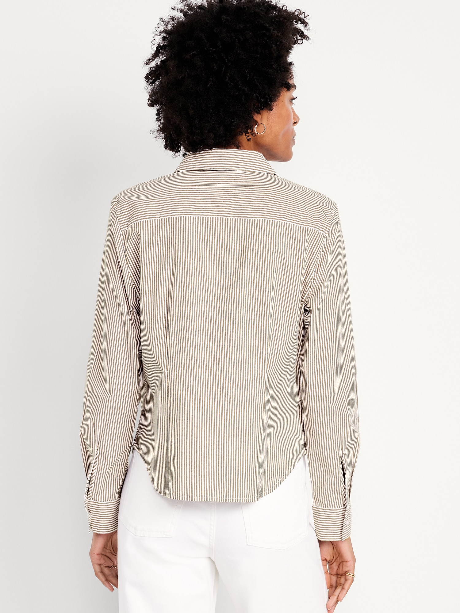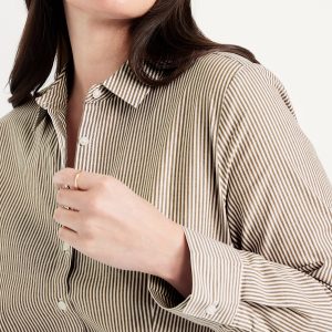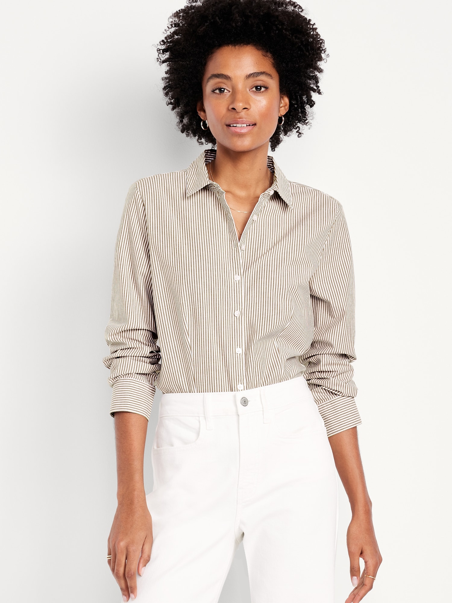 Slim Button-Down Shirt: spread collar, long sleeves, buttoned cuffs, button front, striped print, curved hem, #545902