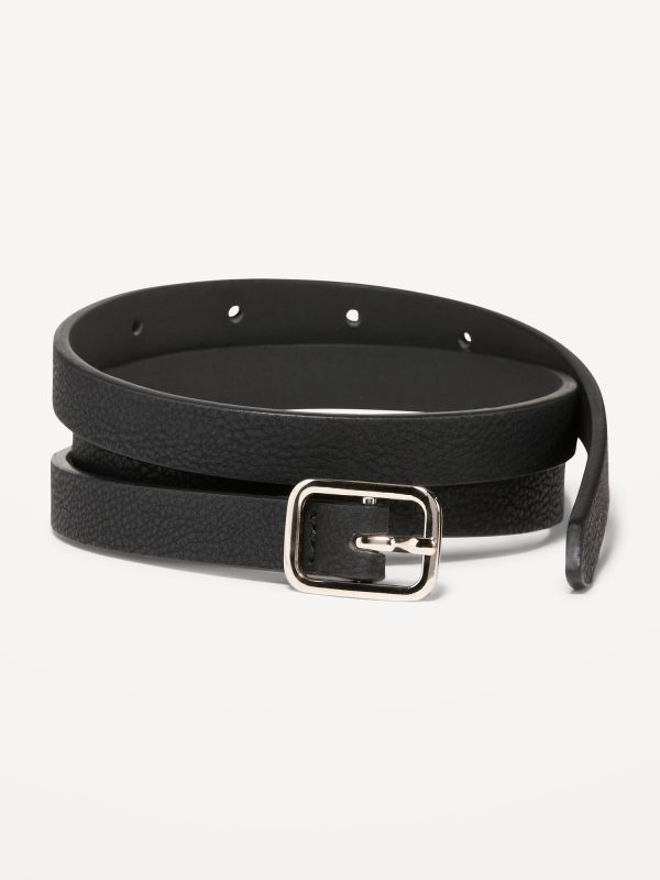 Slim Faux Textured-Leather Belt for Women (0.75-inch)