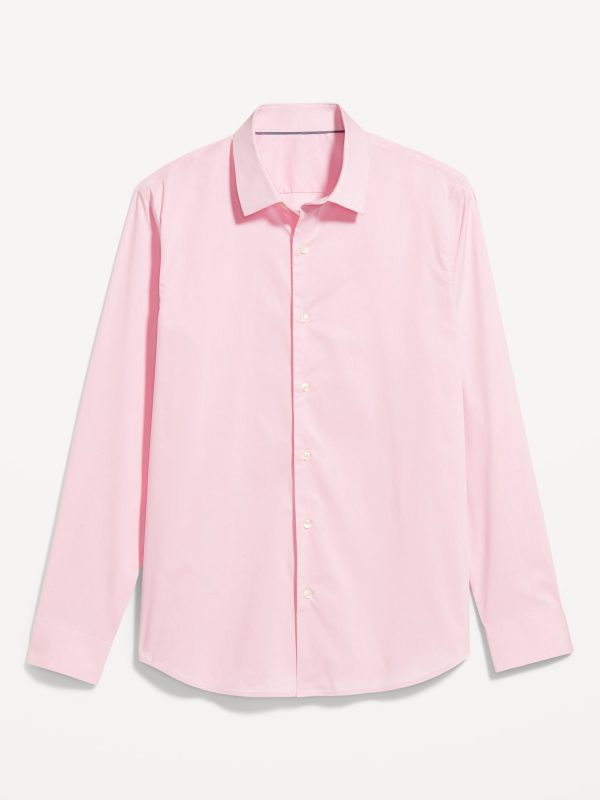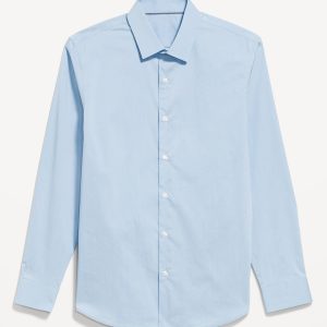 Slim Fit Pro Signature Performance Dress Shirt: 2″ pointed collar, built-in collar stays, long sleeves, buttoned cuffs, full-button front, breathable, quick drying, go-dry wicks moisture, #418103