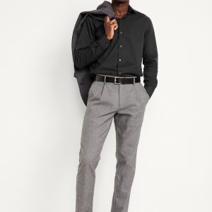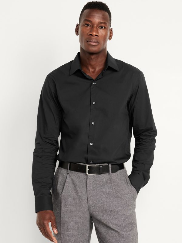 Slim Fit Pro Signature Performance Dress Shirt: 2″ pointed collar, built-in collar stays, long sleeves, buttoned cuffs, full-button front, breathable, quick drying, go-dry wicks moisture, #418101