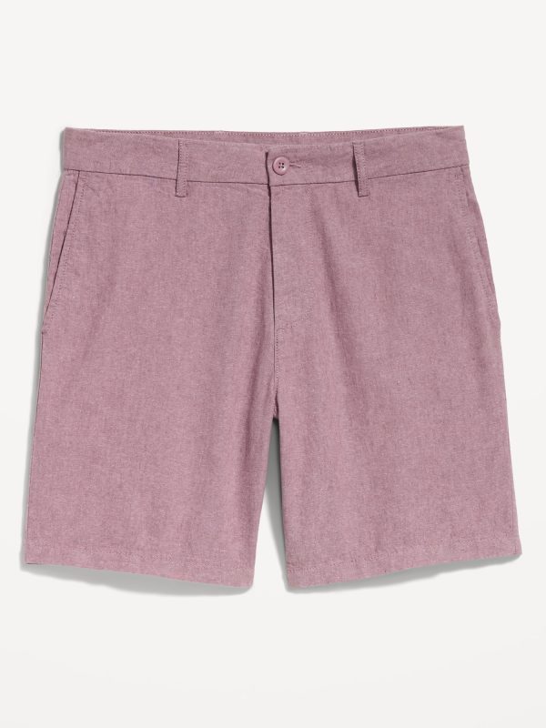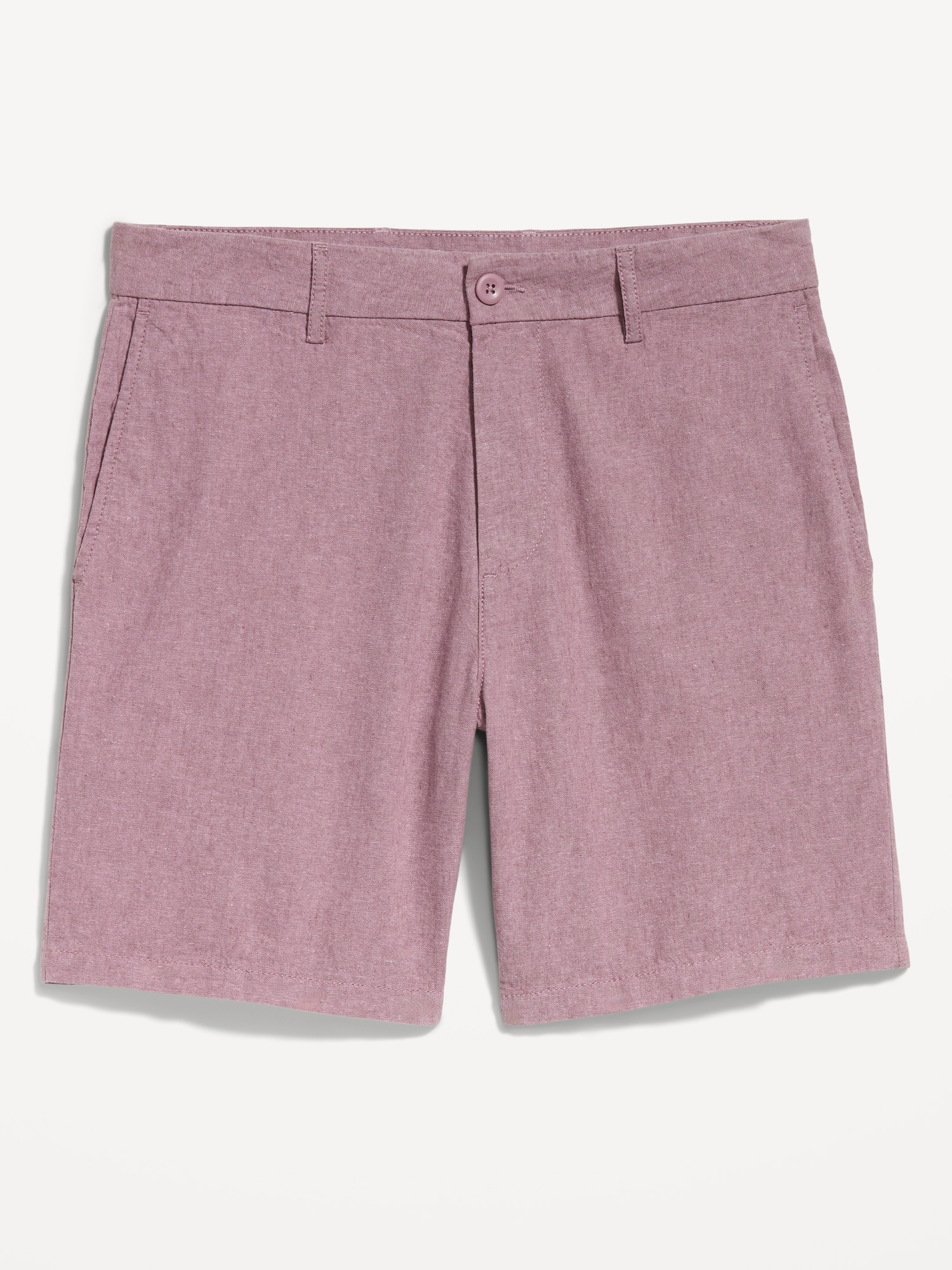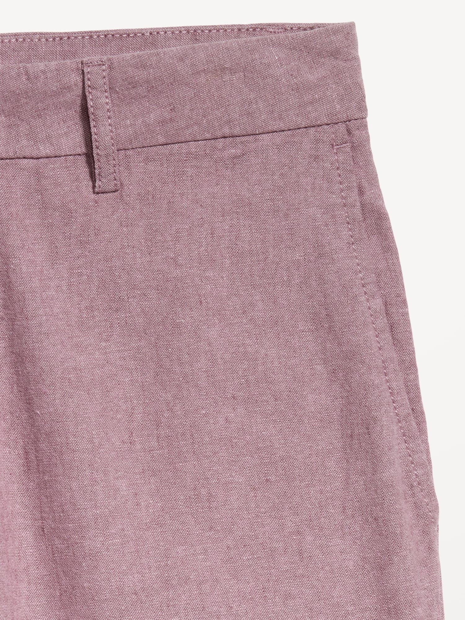 Slim Rotation Linen-Blend Chino Shorts — 8-inch inseam: button front, belt loops, zip fly, on-seam pockets, back welt pockets with button closure at left, #845880