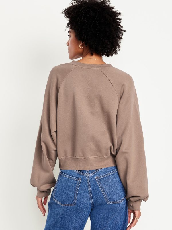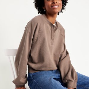 SoComfy Oversized Button-Front Sweatshirt: The perfect-weight, never-taking-this-off fleece.button-front crew neck, long blouson sleeves, rib-knit trim, pullover style, #764233