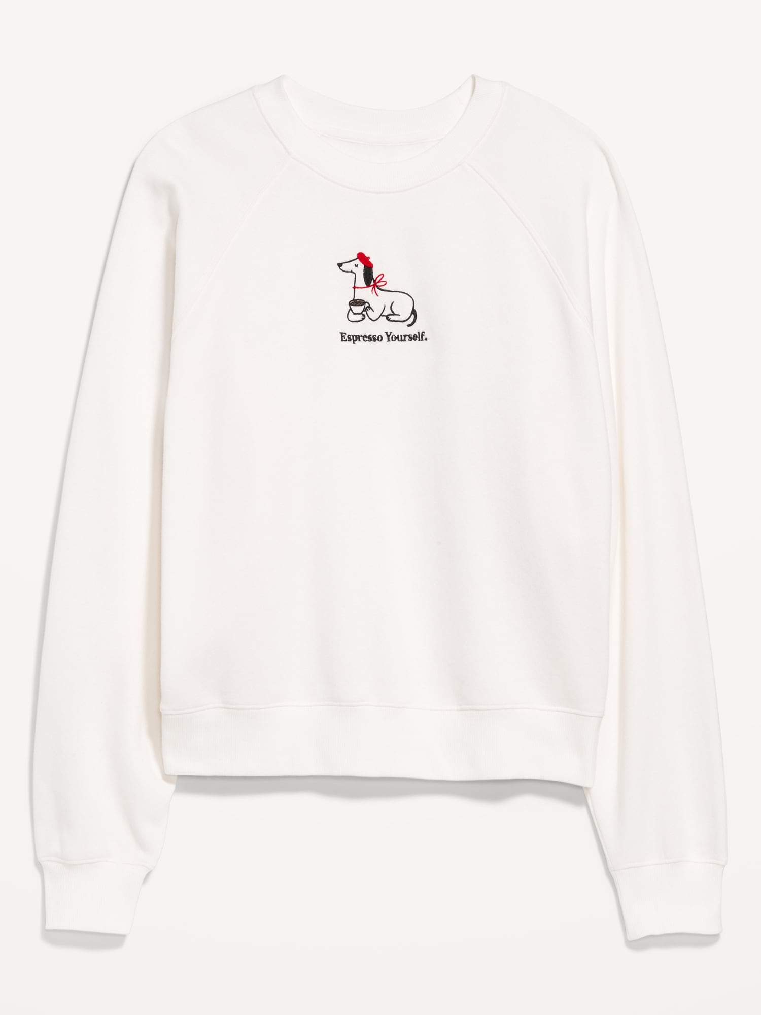 SoComfy Oversized Graphic Raglan Sweatshirt: The perfect-weight, never-taking-this-off fleece.embroidered floral accent, crew neck, long raglan sleeves, rib-knit trim, pullover style, #824100