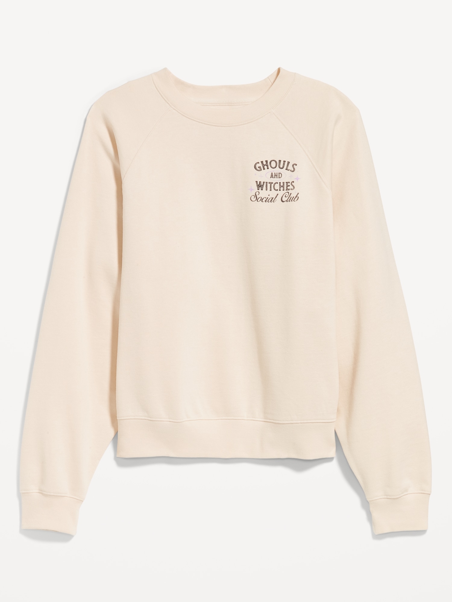 SoComfy Oversized Graphic Raglan Sweatshirt: The perfect-weight, never-taking-this-off fleece.graphic varies by color, crew neck, long raglan sleeves, rib-knit trim, pullover style, #824098