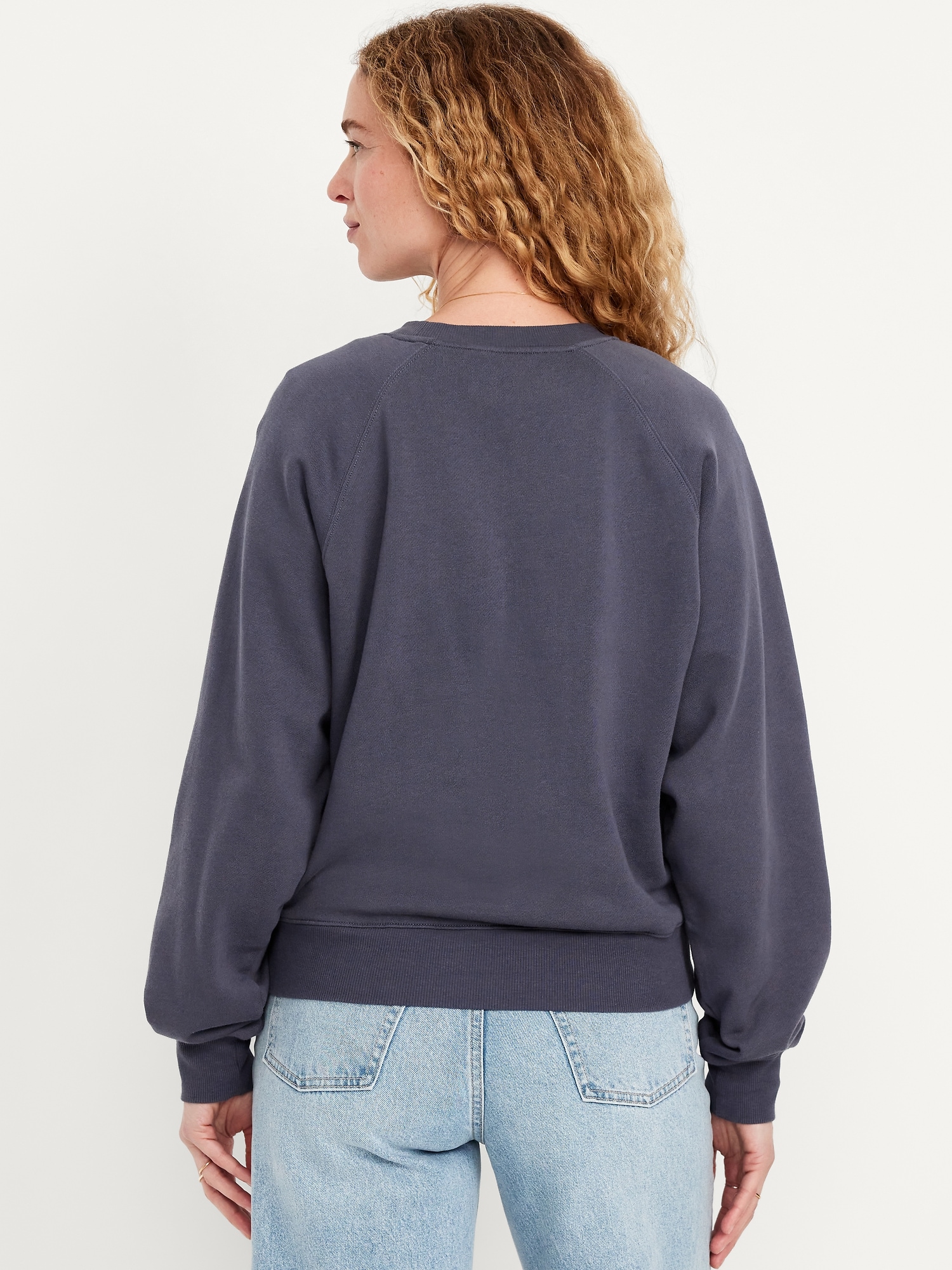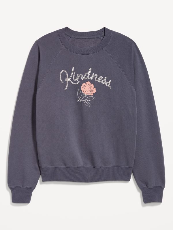 SoComfy Oversized Graphic Raglan Sweatshirt: The perfect-weight, never-taking-this-off fleece.embroidered floral accent, crew neck, long raglan sleeves, rib-knit trim, pullover style, #824100