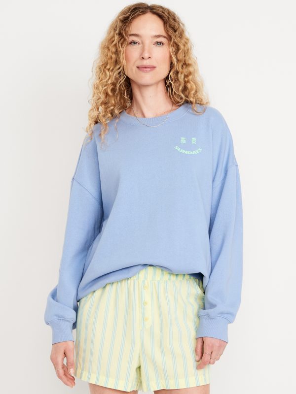 SoComfy Oversized Graphic Sweatshirt: The perfect-weight, never-taking-this-off fleece.crew neck, drop-shoulder sleeves, rib-knit trim, graphics vary, #865011