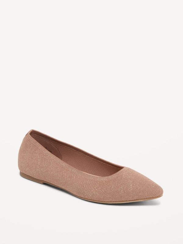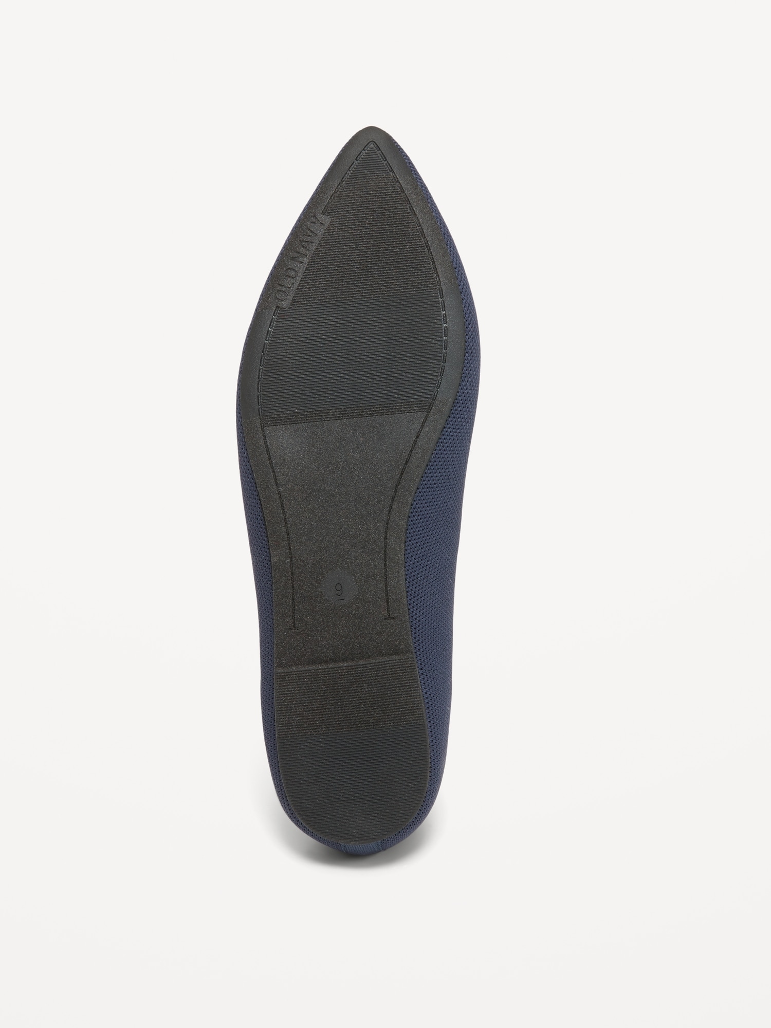 Soft-Knit Pointed-Toe Ballet Flats: soft-knit upper, pointed toe, quilted faux-suede foot bed, textured thermoplastic rubber outsole, 1/4″ heel, #795204
