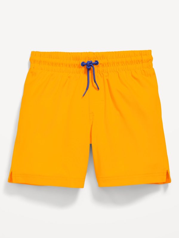 Solid Swim Trunks for Boys: elasticized waistband, adjustable drawstring, single pocket at back, built-in mesh briefs, easy pull-on style, #692076