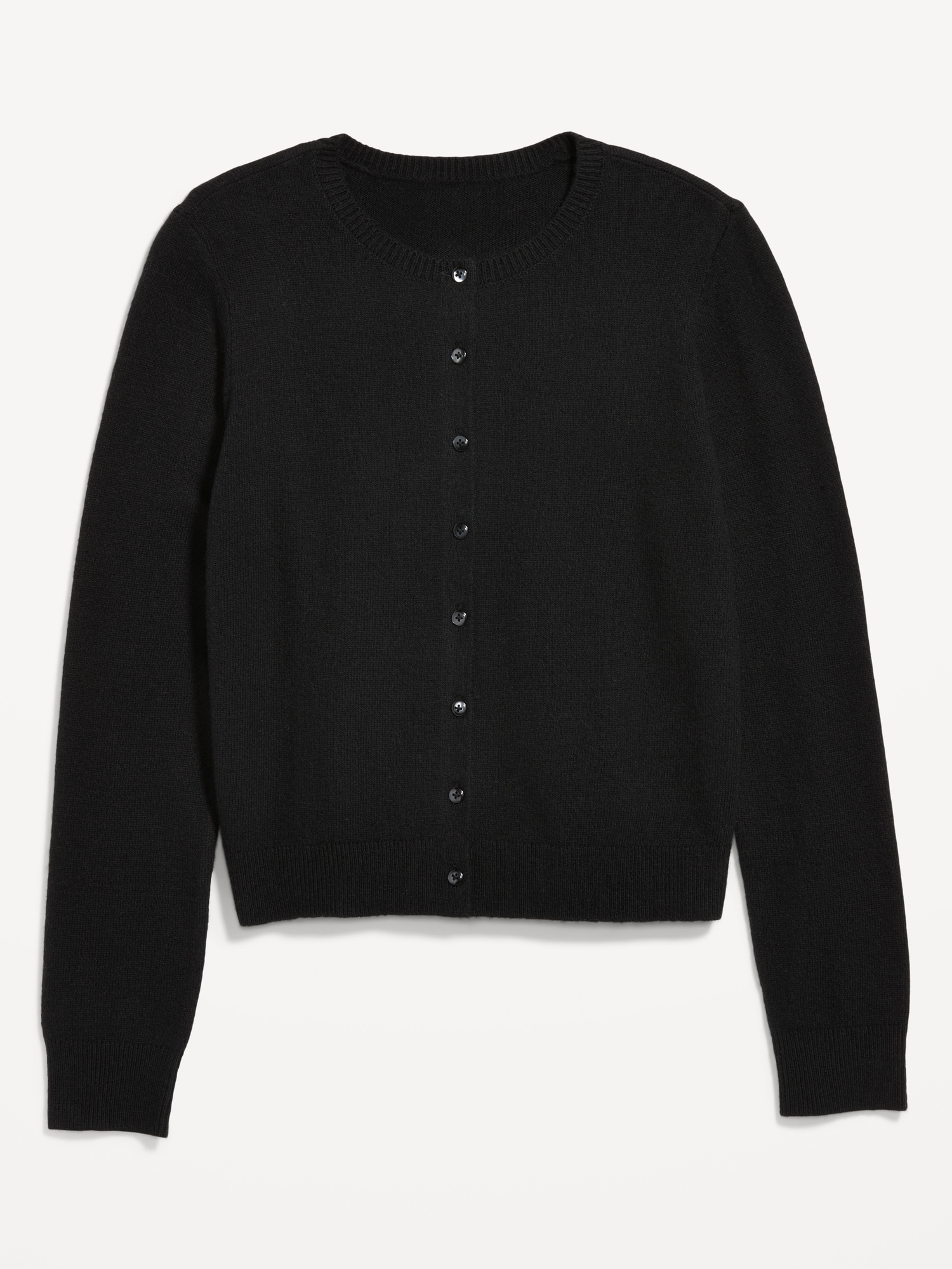 SoSoft Cropped Cardigan Sweater: Featuring SoSoft. Literally “so soft” it’s got cashmere jealous.crew neck, long sleeves, full-button front, #785112