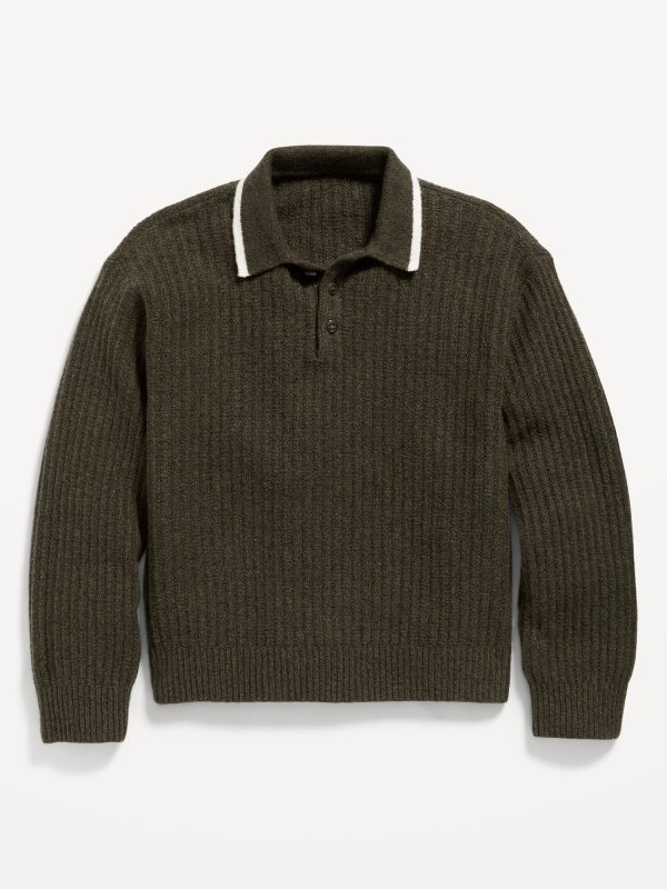 SoSoft Oversized Long-Sleeve Collared Sweater for Boys: We call it SoSoft, because it’s whipped-soft, not too heavy, not too thin. The goldilocks of sweaters.spread collar, long sleeves, drop shoulders, three-button placket, #789049