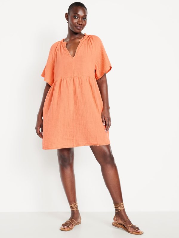 Split-Neck Crinkle Gauze Mini Swing Dress