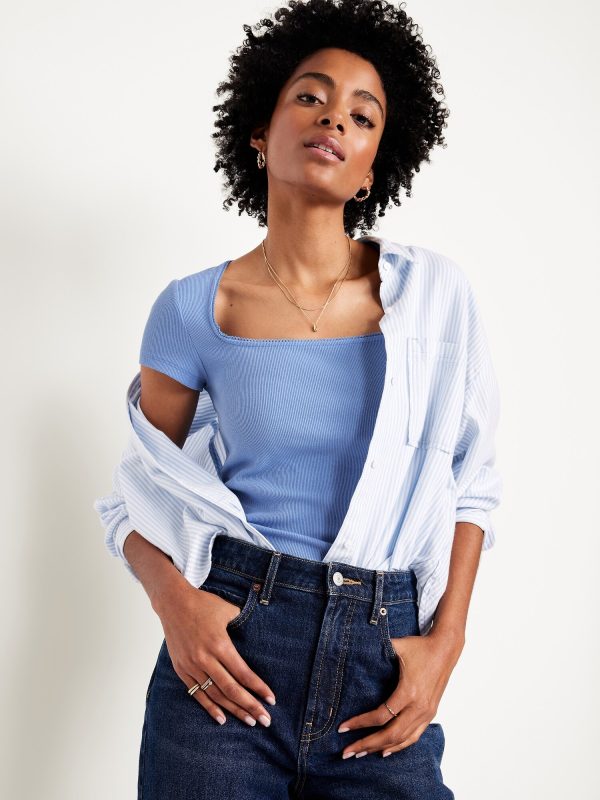 Square-Neck Ribbed T-Shirt: square neck, short sleeves, #749343