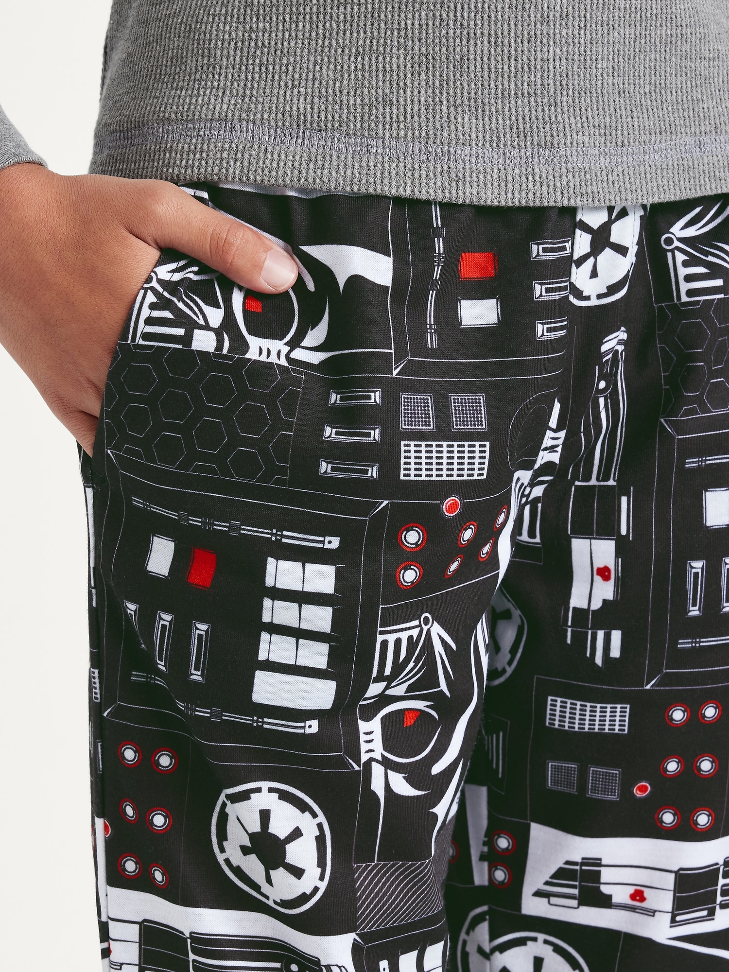 Star Wars™ Jersey-Knit Pajama Jogger Pants for Boys: elasticized waistband, diagonal on-seam pockets, rib-knit cuffs, all-over licensed graphic, © & ™ Lucasfilm, Ltd., #788075