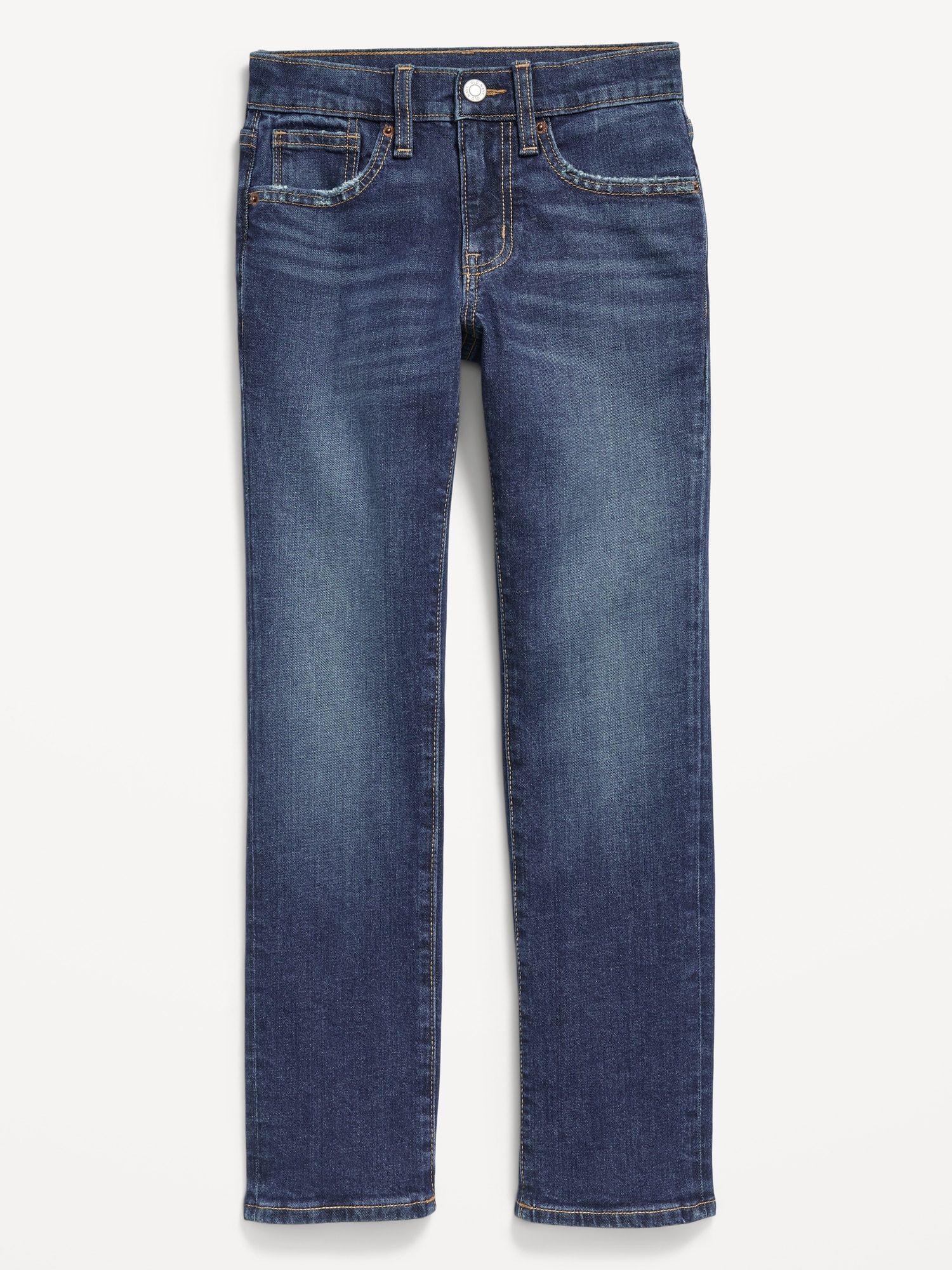 Straight-Leg Built-In Flex Jeans for Boys: Comfy, durable, wear-on-repeat faves.interior adjustable waistband, button closure, zip fly, scoop pockets and coin pocket, patch pockets at back, #814201