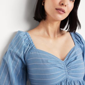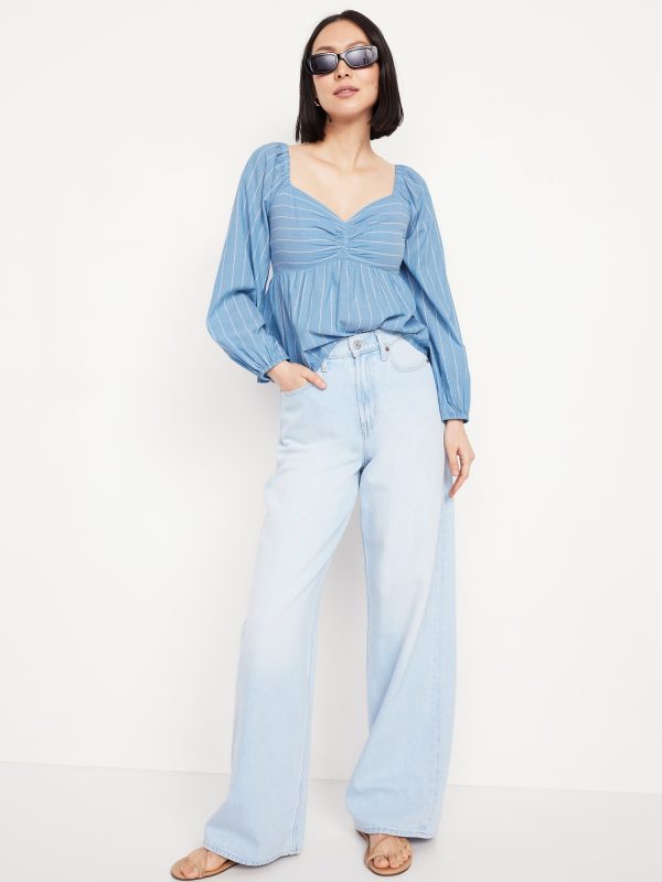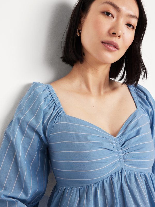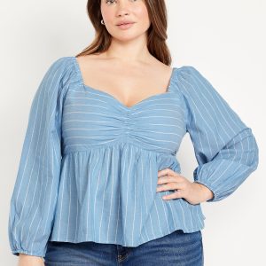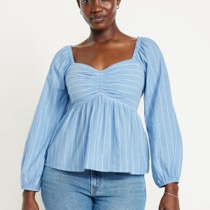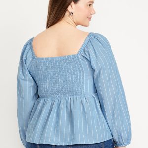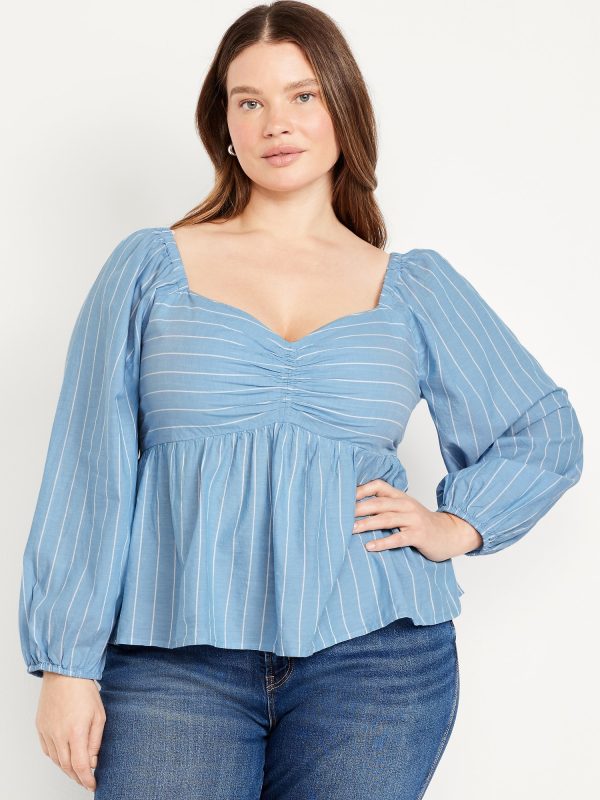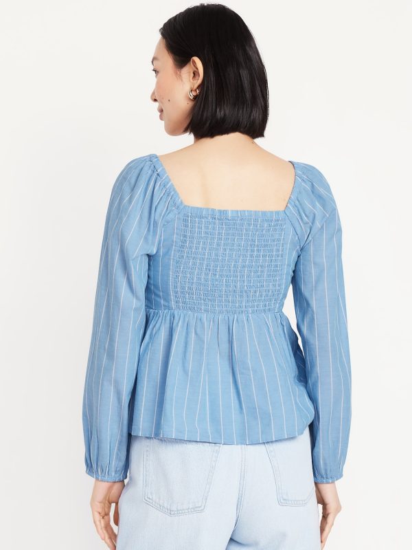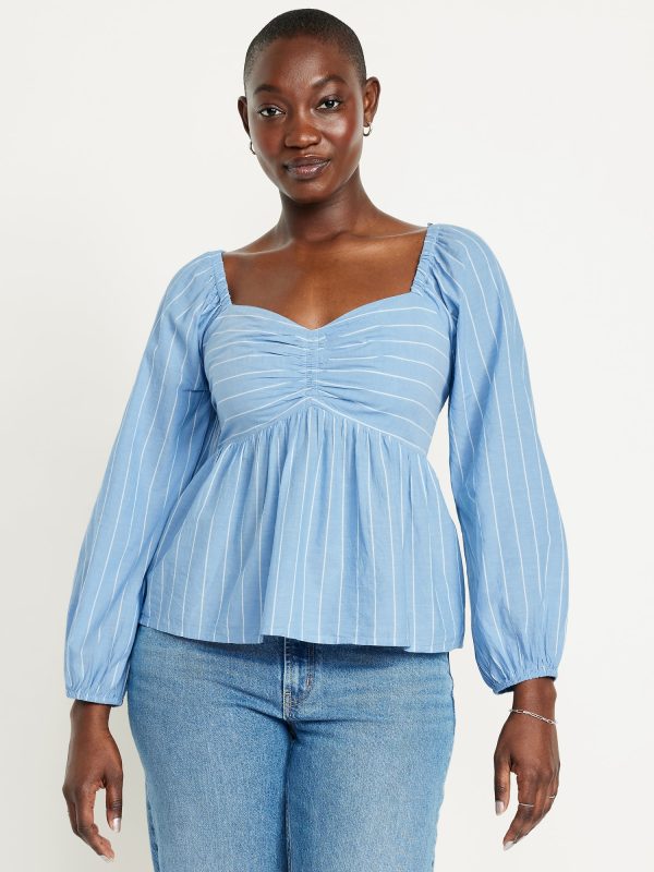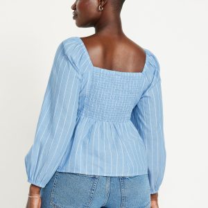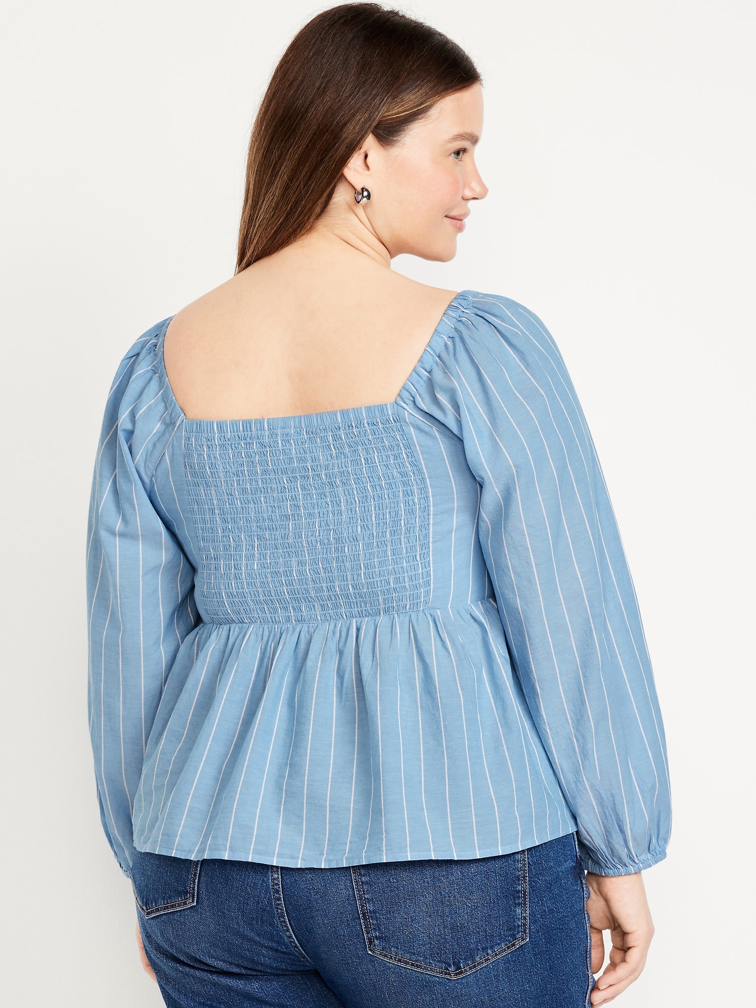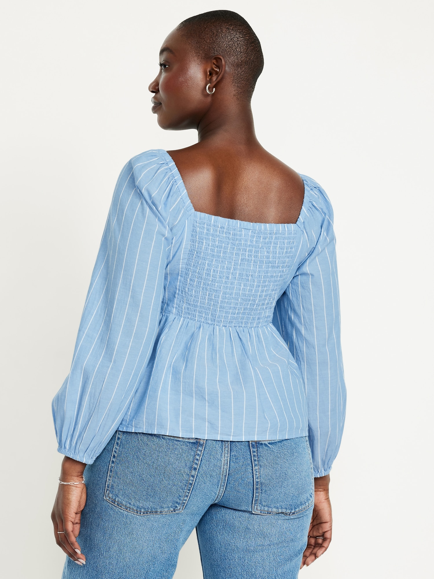 Striped Peplum Top: sweetheart neckline, long sleeves, elastic cuffs, smocked back, striped print, #704104