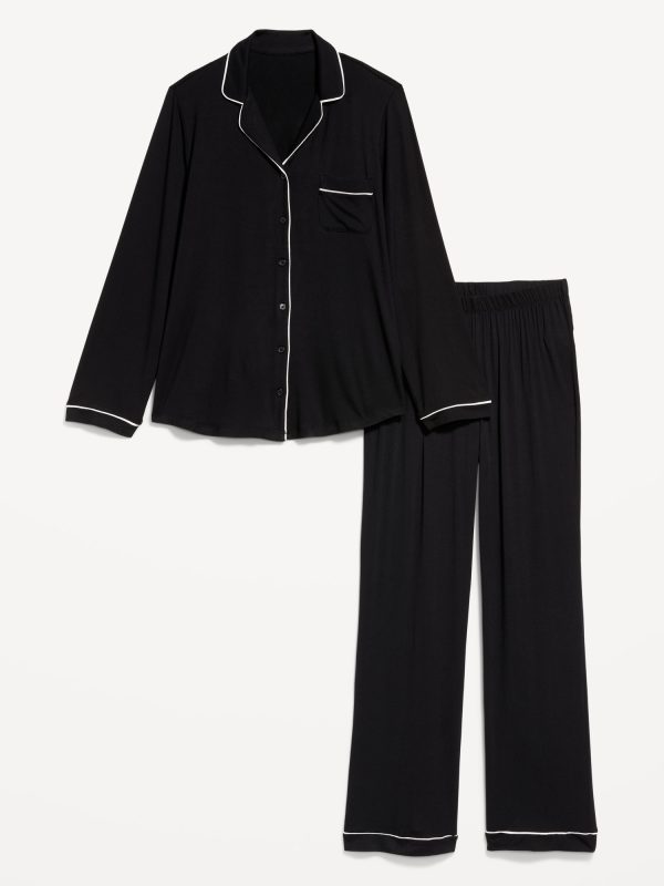 Sunday Sleep Knit Jersey Pant Set: Knit jersey so unbelievably soft and stretchy.set includes pajama shirt and matching bottoms, spread collar, long sleeves, patch chest pocket, full-button front, elastic-waist pajama pants, decorative button fly, #422082