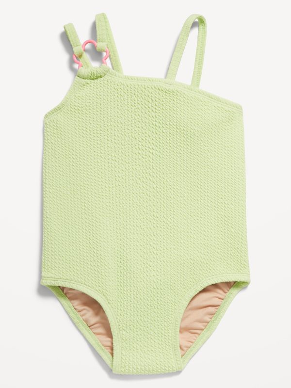 Textured Asymmetric One-Piece Swimsuit for Toddler & Baby: asymmetric neckline, thin straps, decorative ring along one strap, #690635